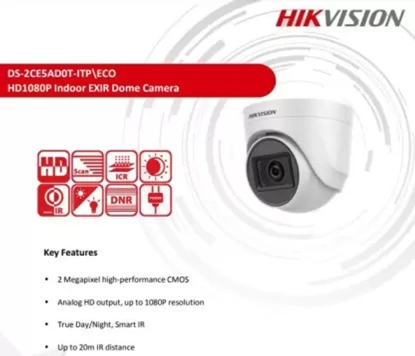 HIKVISION TURBO HD 1080p Indoor IR Turret Camera - 2 MP / Day & Night Switch Smart IR (EXIR Technology) / 20m IR Distance