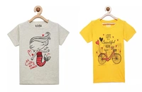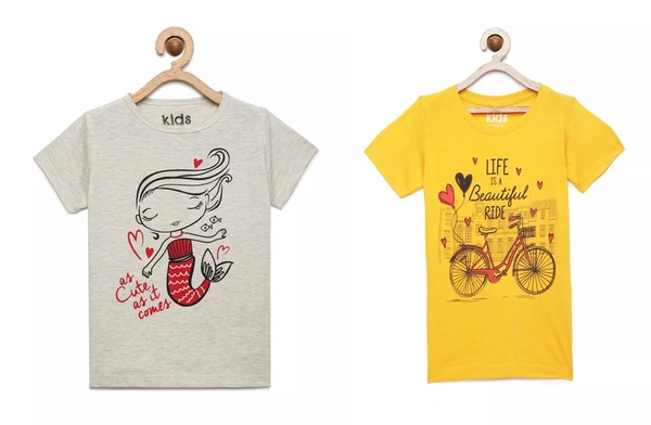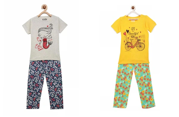 Kids Girls 2-8 Years Graphic T-Shirt Paired With Printed Pyjama-COMBO PACK OF 2