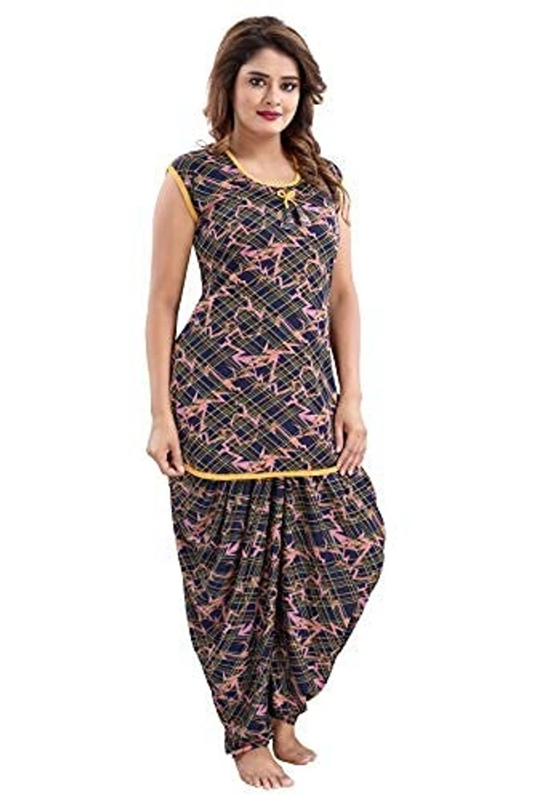 Sarina Half Sleeves All Over Print Top And Maxi Dhoti Style Bottom Night Suit For Women-LINING