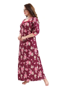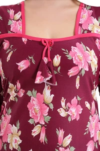 Sarina Square Neck Floral Girl's Print Soft And Silky Full Length Nighty I Nightdress I Nightwear