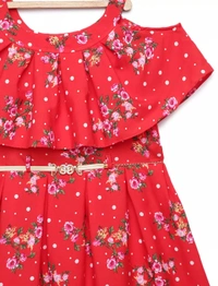 Sleeveless Casual Wear Poly Crepe Floral Print For Girls- Girls Frock
