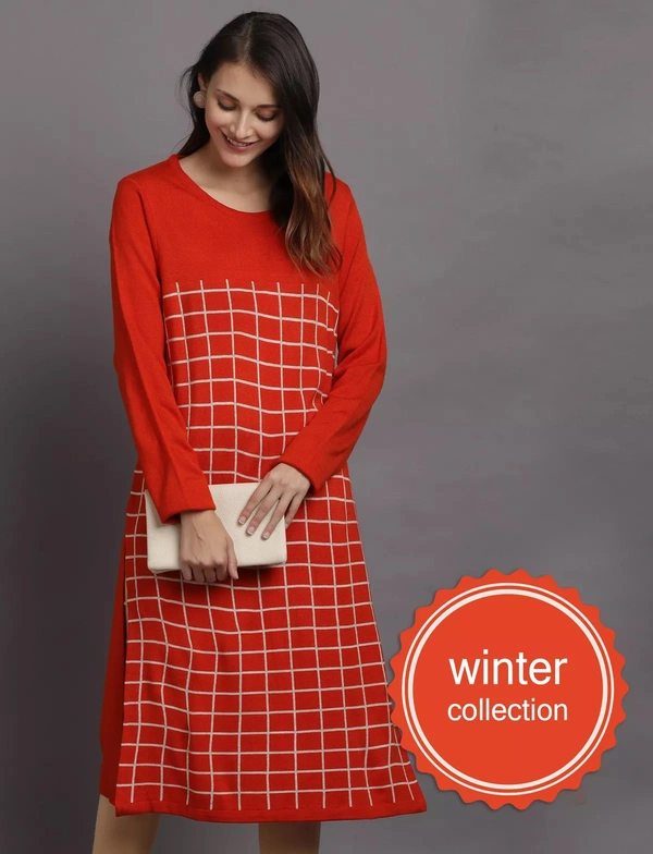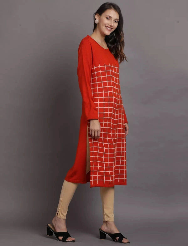 Winter Wear Acrylic Checks Knee Length Straight Kurti For Women-Winter Collection (Size - M/L And XL/XXL)